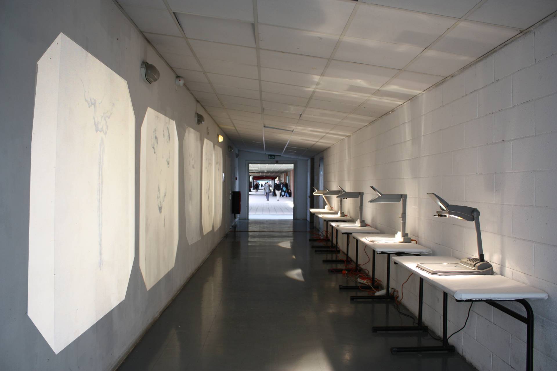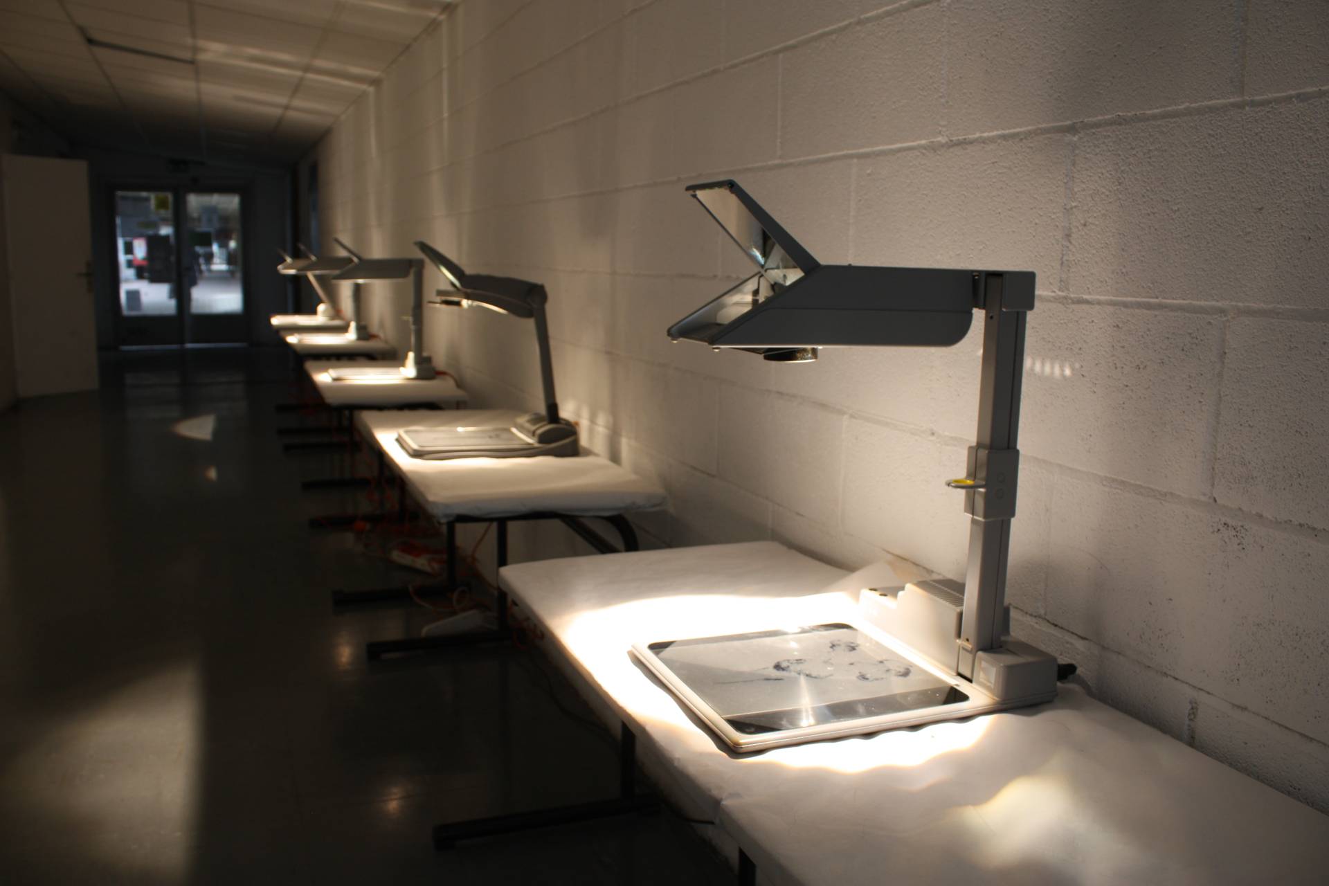 Installation, 6 rétroprojecteurs et transparents, workshop à l’Université Jean Jaurès, Toulouse (Haute-Garonne)