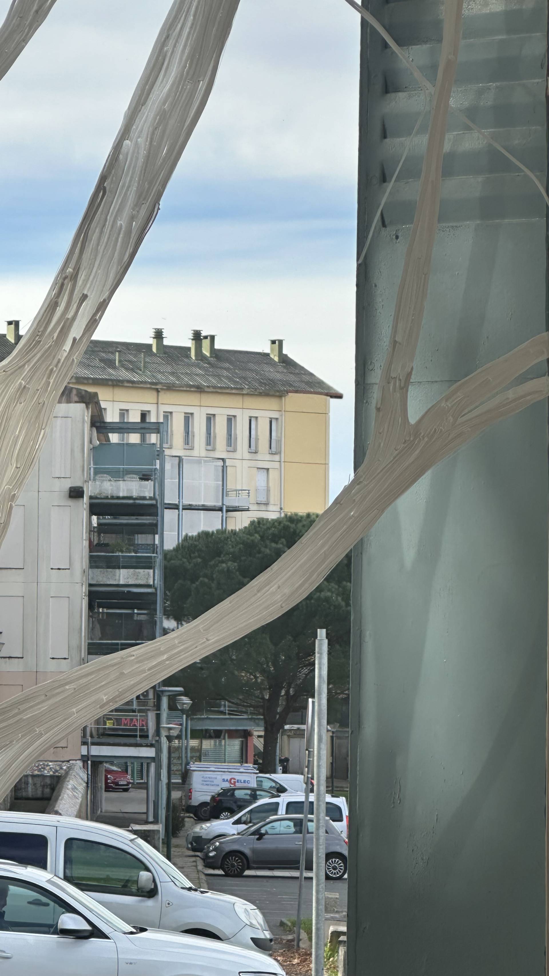 Ce feuilletage spatial donne à percevoir une réalité vacillante, une image spéculative, où sont mis en tension transparence/opacité qui questionne la puissance transformatrice et transfiguratrice d’un réel.