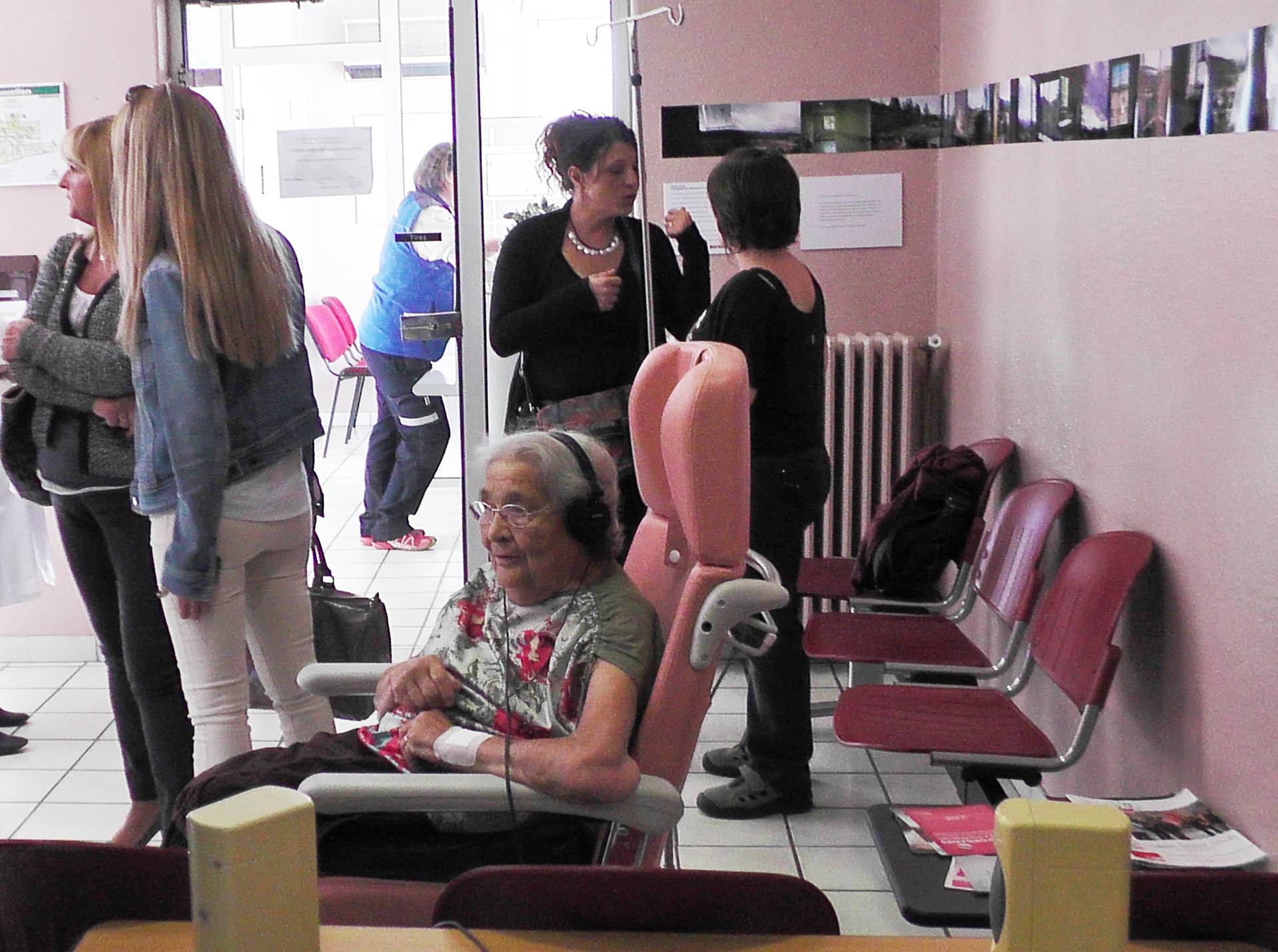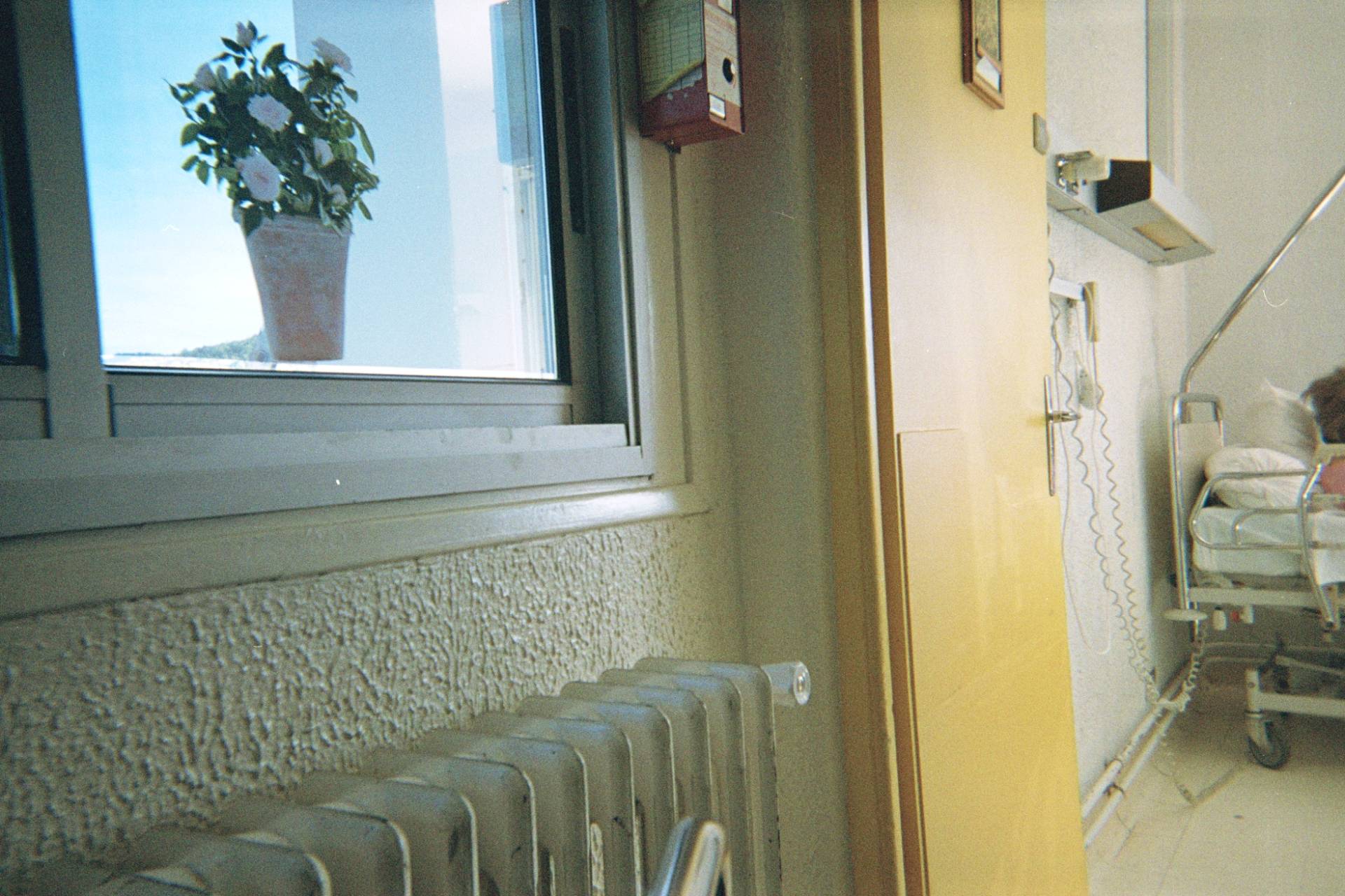 Dans ce lieu aseptisé et en repli du monde extérieur, j’ai proposé aux patients et au personnel de croiser leur regard sur la perception du monde qui les entoure. Munis d’un appareil jetable, ils ont choisi une fenêtre et l’ont photographiée. A partir du cliché développé, ils m’ont livré leurs impressions, leurs réflexions. Cette installation donne à voir la richesse des regards, des sensibilités. Elle révèle aussi la portée du regard et l’étrange perception de l’espace que l’on peut avoir depuis le lit, la chaise, appuyé sur un déambulateur…