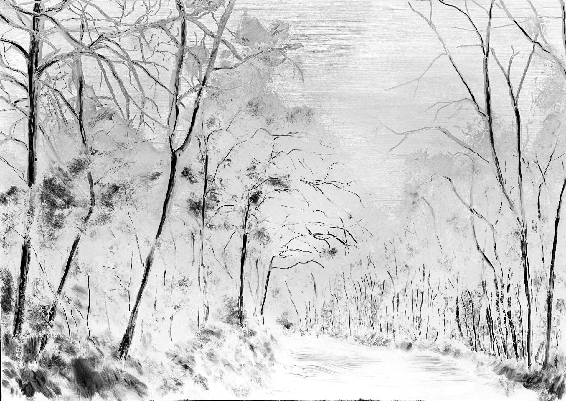 Les 3 dessins ont été photographiés puis retravaillés numériquement, par inversion du noir et du blanc ainsi que par symétrie de l’image, avant d’être imprimés à la même taille que les originaux.