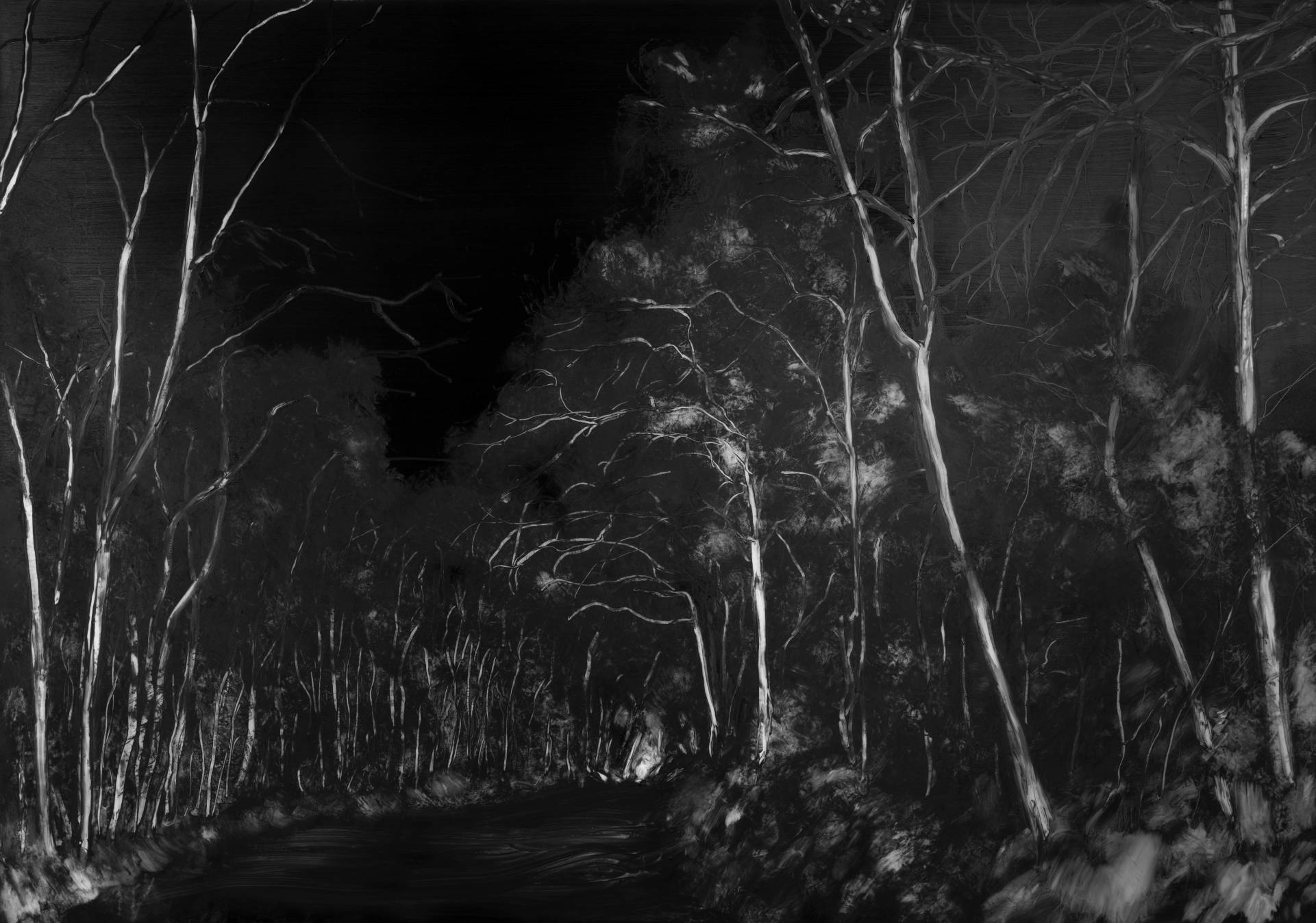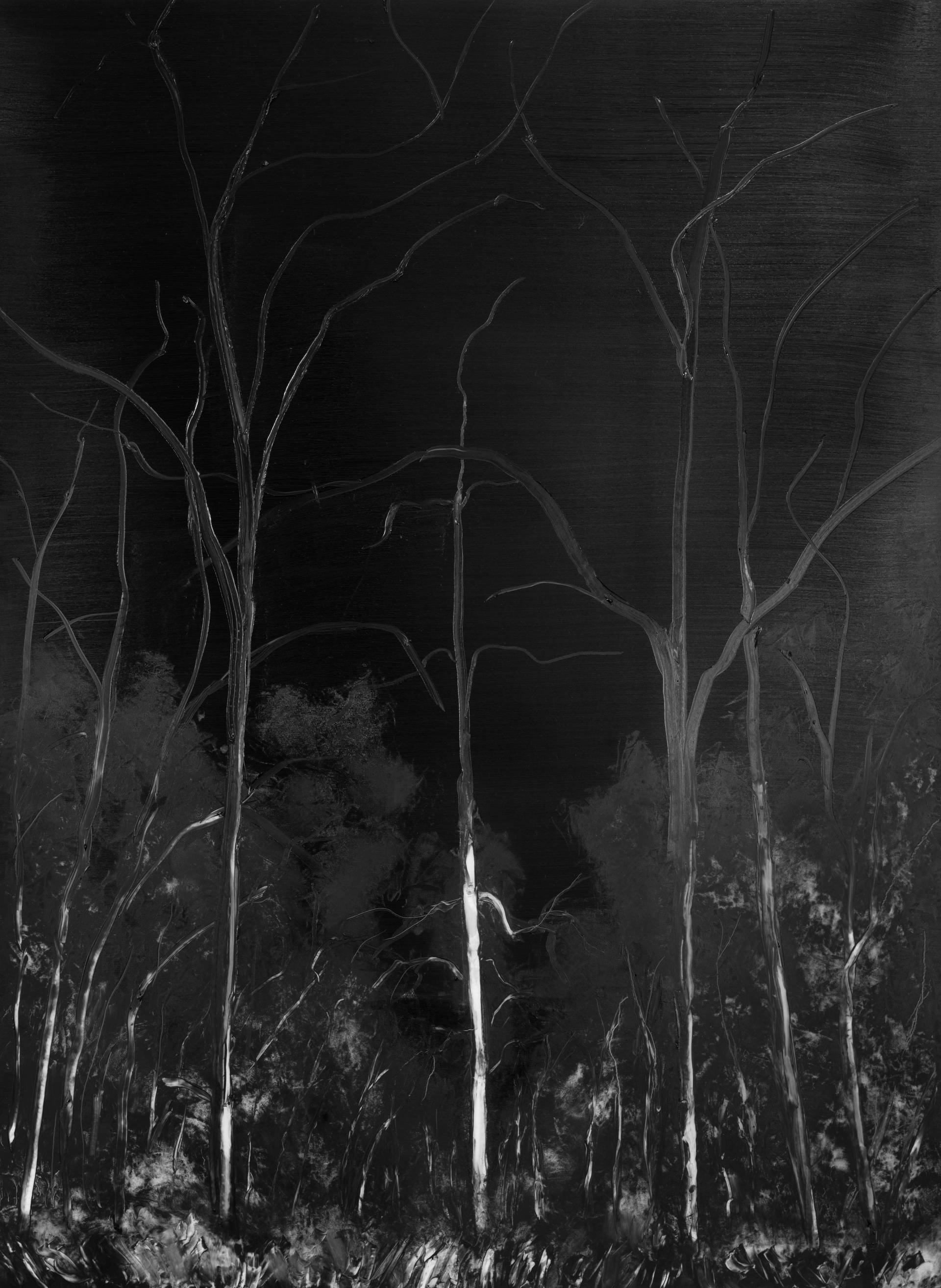 Cette série prolonge la réflexion et la recherche plastique initiées dans Loup, y es-tu ? autour de l’ambiguïté de notre perception de la forêt, autant espace de mystère et de danger — faisant écho aux contes et légendes de l’enfance — que comme un écosystème complexe et fragile, aujourd’hui reconnu essentiel à la survie humaine.